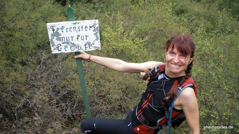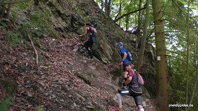 Die Läufe mit Markus an der Mosel zeigen mir immer wieder, dass man nicht immer in die Alpen muss um Trails mit Klettersteigen und knackigen Aufstiegen zu erleben. M.E. zermürbt einem das ständige Auf und Ab sogar mehr als die langen Aufstiege mit anschließendem Abstieg in den Alpen.