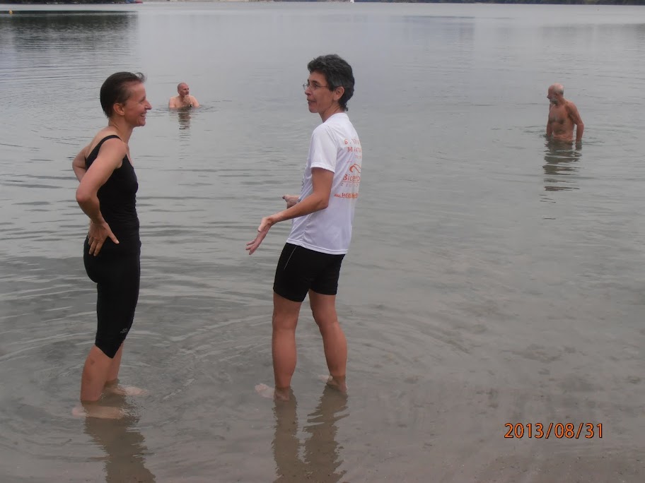 Sascha war flott unterwegs und ich zog alleine meine Runden. Schwimmen im See sollte heute meine Belohnung sein, wenn ich den Marathon finishe. Als ich auf meine 6. Runde ging, kam Andy schon aus dem Wasser. Er hatte für heute sein Soll erfüllt und sich nach getanem Training erfrischt.