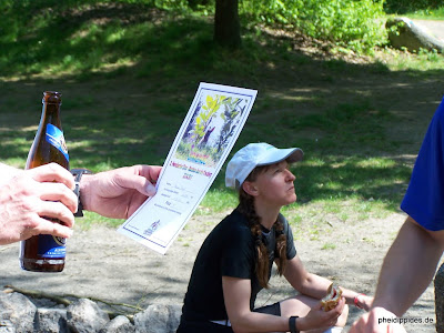 Zwischenzeitlich sind die Temperaturen gut angestiegen und es sind schon um die 25°C. Eine Runde hat ja 7 km. Die können bei dem Wetter ohne Verpflegung richtig lang werden. Also beschließe ich mit ein paar Wasserflaschen und Bechern auf dem Kreuzberg einen VP für alle zu errichten.
